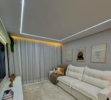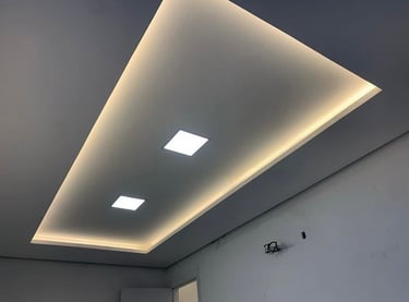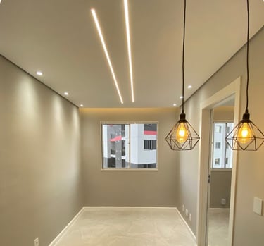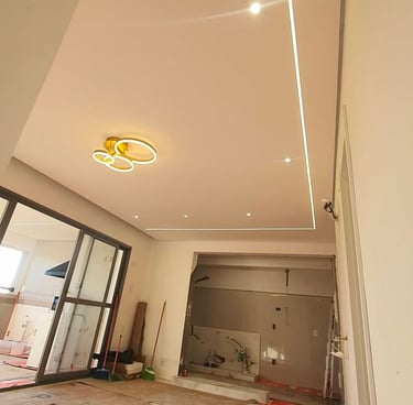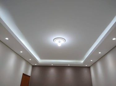 Atendemos projetos residenciais e comerciais, executando desde forros, sancas e divisórias até toda a parte elétrica, garantindo praticidade e um serviço completo em um só lugar.
